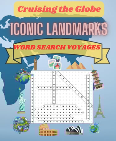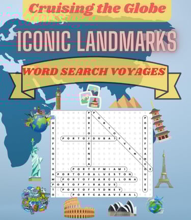 Embark on a fascinating puzzle journey with "Cruising the Globe: Iconic Landmarks - Word Search Voyages," the first installment of an intriguing series released in collaboration with Cruising the Globe. This painstakingly curated word search puzzle book allows you to discover some of the world's most famous places from the comfort of your own home. Each puzzle is a journey in and of itself, providing a fascinating and engaging way to discover and learn about famous landmarks across the world. "Iconic Landmarks" is ideal for puzzle fans and global visitors alike, promising to challenge your mind and inspire your wanderlust. Grab your copy now and embark on your first of many puzzle adventures with us!